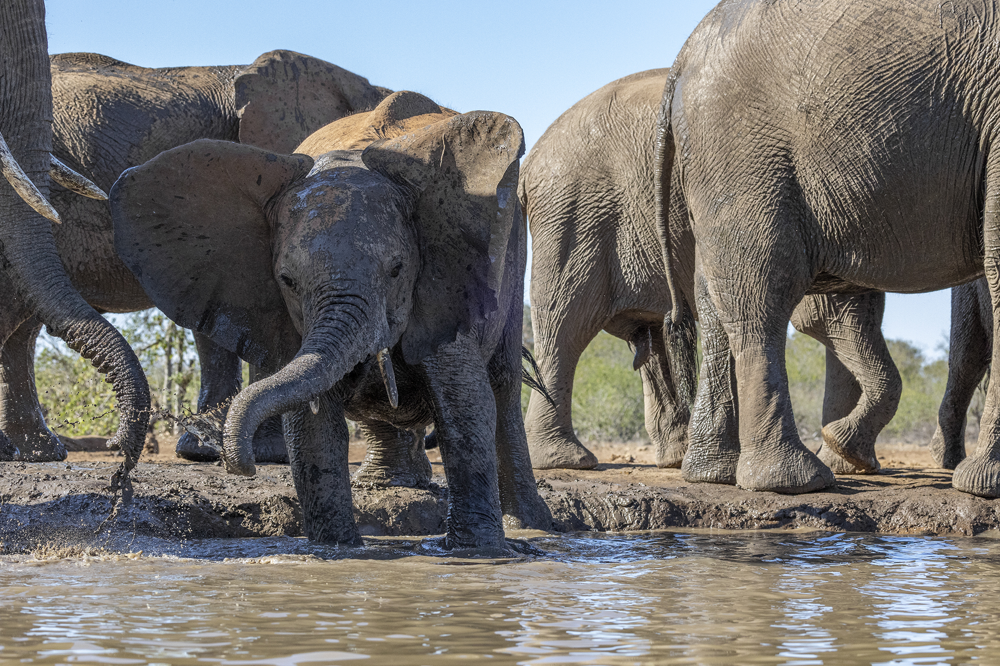 The next group of Elephants arrived in a rush, barging each other about for the best position.